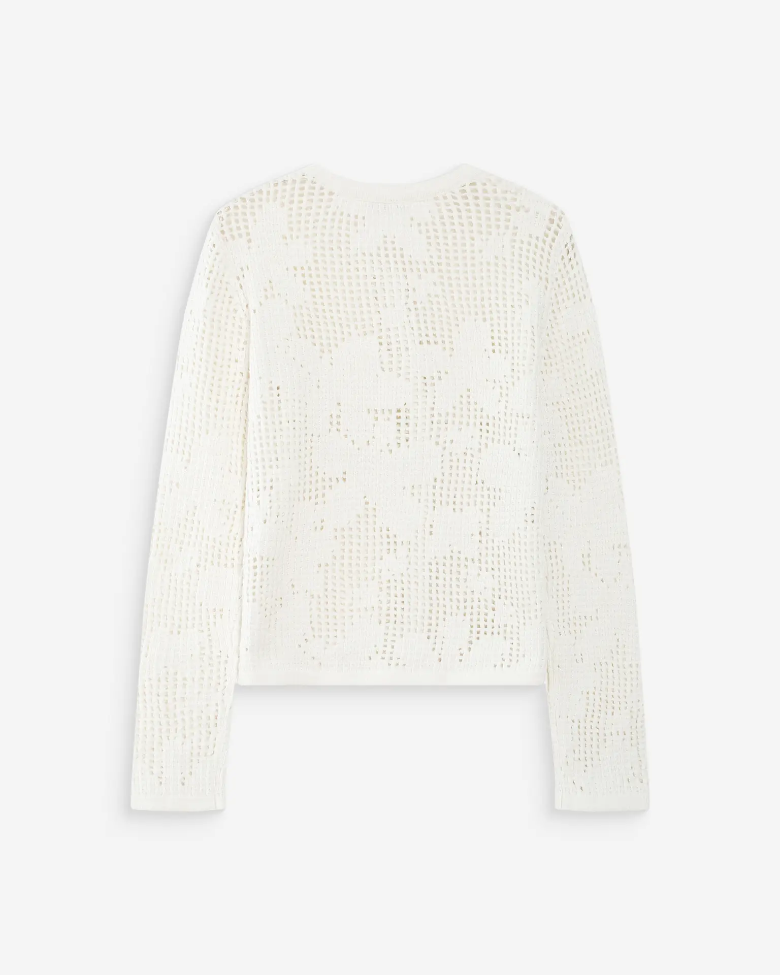 The openwork floral knit is not only beautiful, but timeless. Designed with a straight cut, classic round neckline and considered tubular finishes, this is a piece made to transcend seasons rather than follow fleeting trends. Its durability and versatility encourage repeat wear, layered styling and long-term wardrobe value.